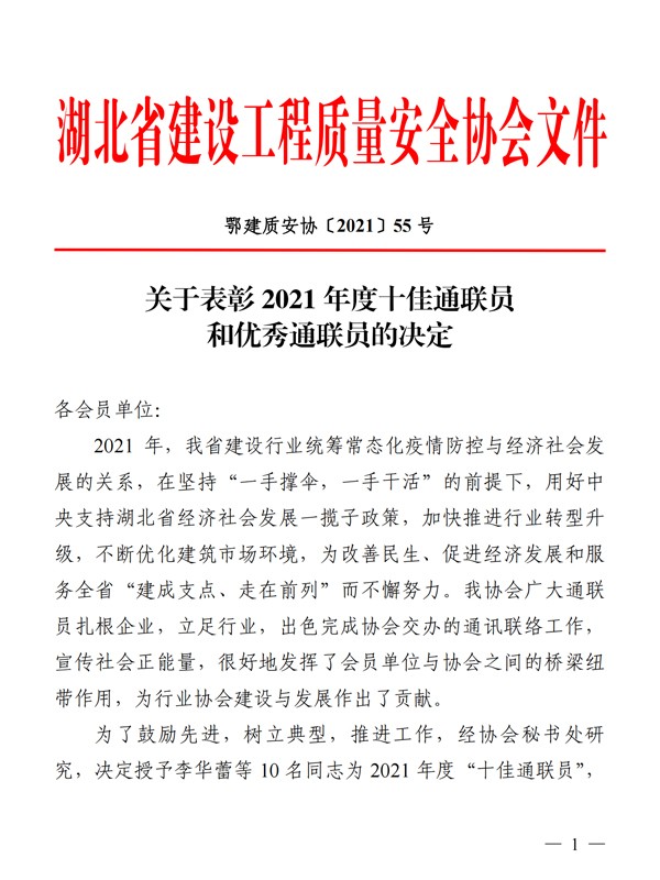 關(guān)于表彰2021年度十佳通聯(lián)員和優(yōu)秀通聯(lián)員的決定