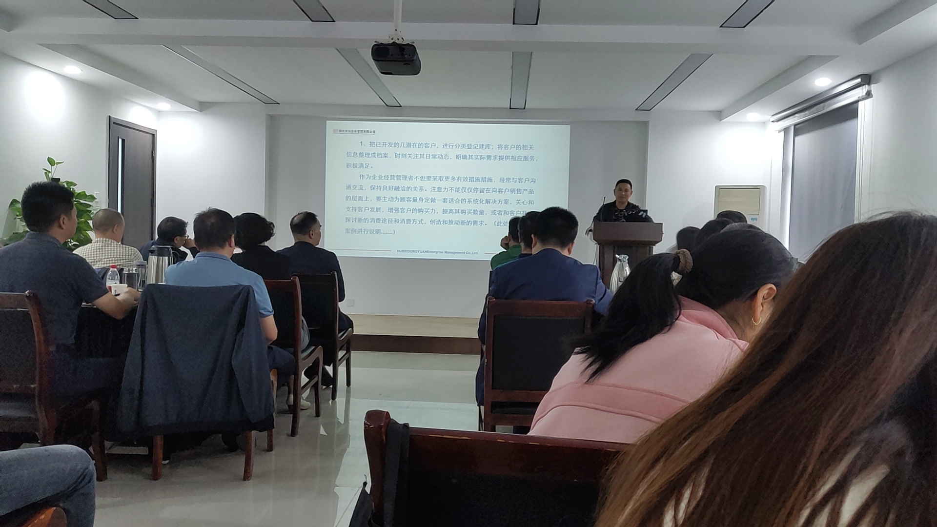閱讀次數(shù):1161 發(fā)布時間:2023年09月23日2023年9月23日,東元企業(yè)管理公司組織《客戶維護(hù)與市場拓展》課題分享活動。公司董事長侯修煉作為主講之一登臺分享,公司全體管理人員在臺下認(rèn)真聆聽學(xué)習(xí)。此次課題分享旨在提高企業(yè)員工業(yè)務(wù)知識學(xué)習(xí)能力,提高技術(shù)能力和管理水平。