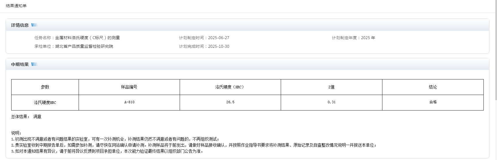 2025年8月,公司再獲兩項項能力驗證“滿意”結果。分別是2025年度金屬材料洛氏硬度(C標尺)的測量能力驗證取得滿意結果;保溫材料導熱系數(shù)測定能力驗證取得滿意結果。