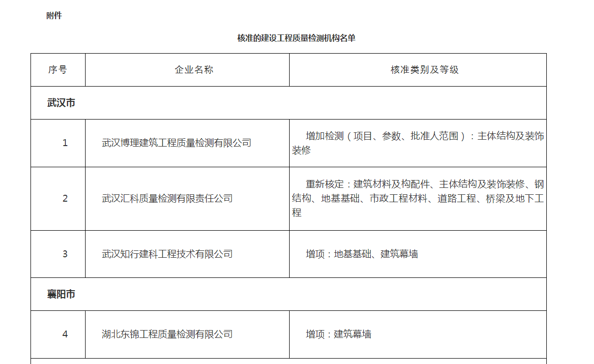 閱讀次數(shù):334 發(fā)布時間:2025年12月11日2025年12月9日,湖北省住房和城鄉(xiāng)建設(shè)廳公告核準建設(shè)工程質(zhì)量檢測機構(gòu)名單,我司建筑幕墻檢測資質(zhì)順利通過。