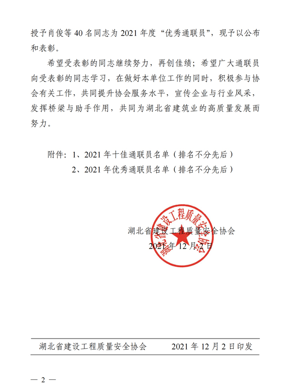 鄂建質(zhì)安協(xié)〔2021〕 55號:表彰通聯(lián)員通知